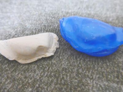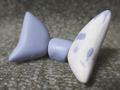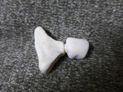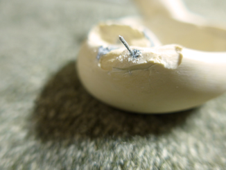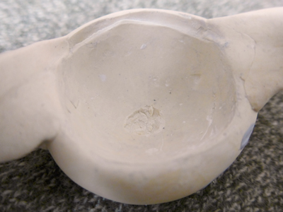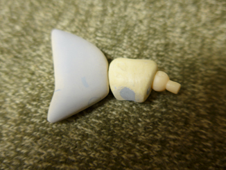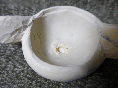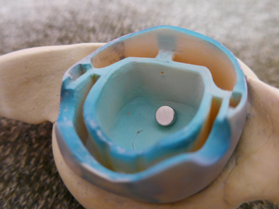 メンタムを塗って、リアちゃんの頭の形に沿わせます。実際に頭と接続するときには、しょうがないのでダボ穴をあける予定です。できればつくりたくなかったのですが、ジョイントを2つもさしているものにさらに磁石を仕込むスペースはないですし、重力にたえられる気がしないので。