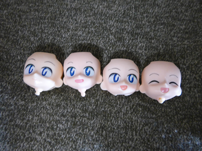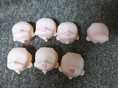 リアちゃんは目のくぼみ的に今着けている顔と、左からニ番目の顔がウインクになるのですが、ウインクで表情差だしてもなあ…という気持ちもありますし、うーん…。