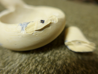 ここの磁石をとるためにデザインナイフで掘り出していたのですが、飛んで来たパテの塊が目の中に入ってすごくすごくすご~くイタかったです。自力で取ったので、今は何ともないのですが。