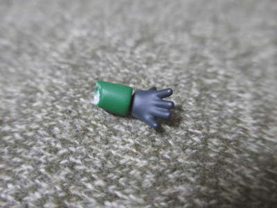 代用のジョイントをはめてみたものの、キューポッシュジョイントに比べて固いし、はめる時に軸を削った関係で上手く可動してくれません。削らない長さの時に可動させることを前提としているせいだと思います。さらに引っこ抜いたりしている間に関節近くの塗装が剥げてしまったりで、ヘタに触るよりかは…とジョイントを待つことになりました。